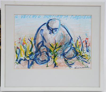 Ermanno Olmi Bergamo 1931 "Il vecchio trapianta pianticelle" tecnica mista su...