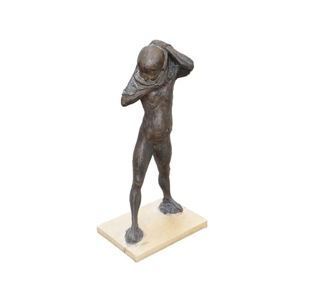 Carmelo Cappello Ragusa 1912 Milano 1996 "Giovinetto che si spoglia" 1945 scultura in bronzo, h. cm 85 Firmata e datata alla base