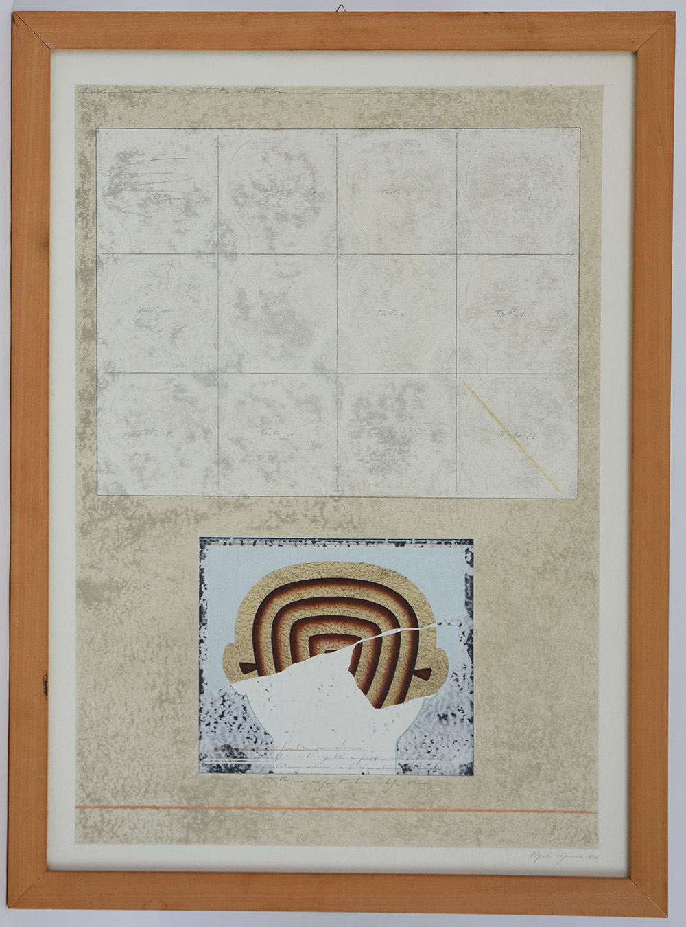 Angelo Cagnone Carcare 1941 "Dentro e fuori" 1976 tecnica mista su carta (cm 70x50) Firmato e datato 1976 in basso a destra. In cornice