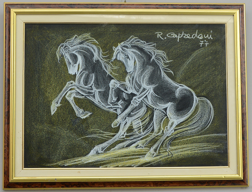Renzo Capredoni "Cavalli" '77 tecnica mista su cartoncino (cm 50x70) firmata e datata in alto a destra, in cornice