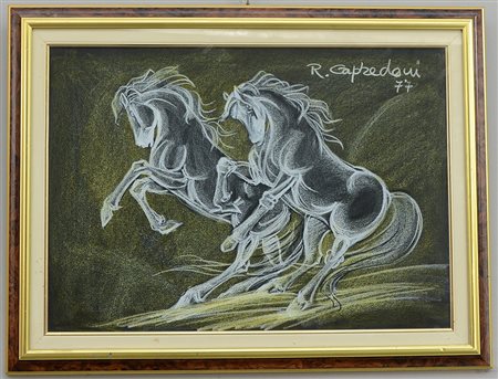 Renzo Capredoni "Cavalli" '77 tecnica mista su cartoncino (cm 50x70) firmata...