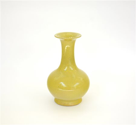 Vaso a bottiglia in porcellana ad invtriatura cracquele di colore giallo...