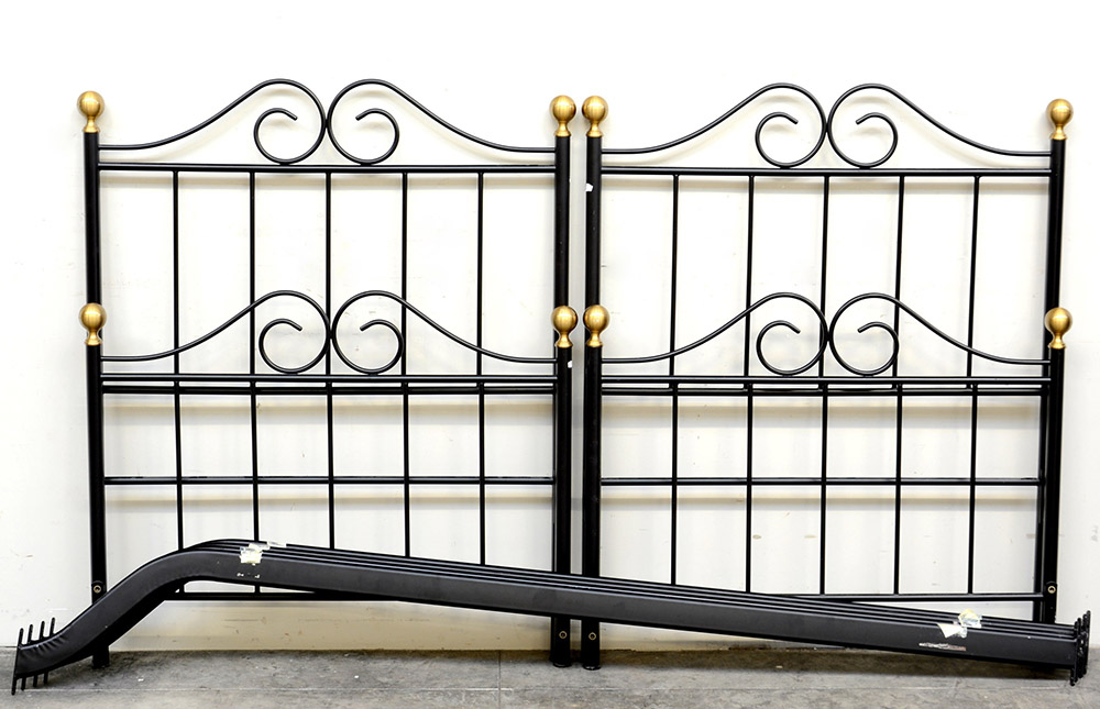Coppia di lettini in metallo laccato nero con pomoli dorati