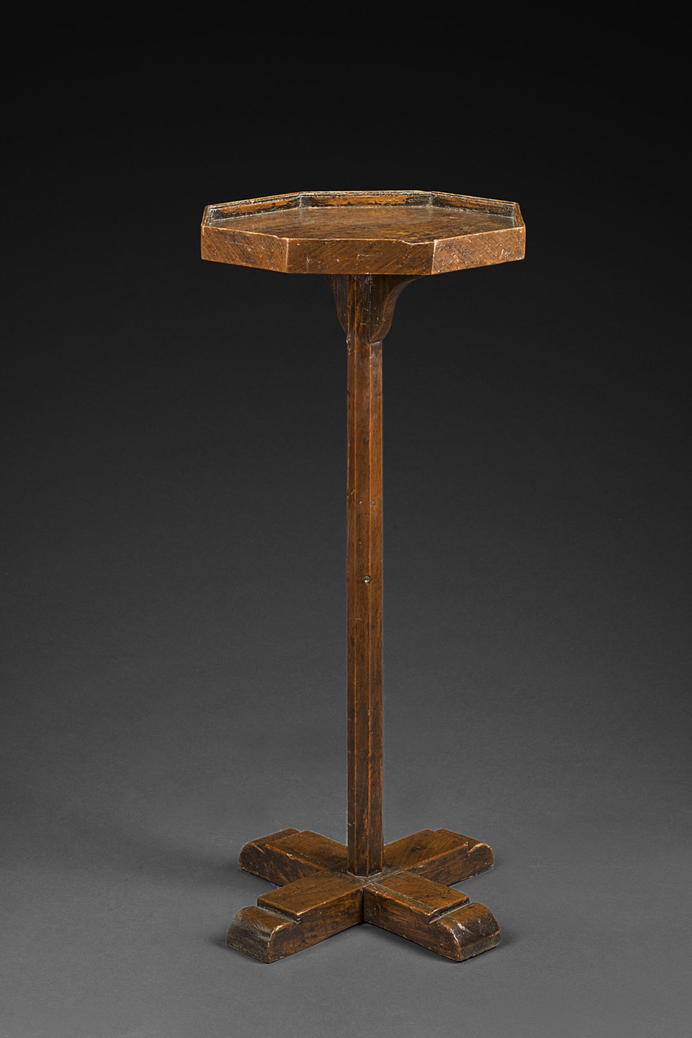 Antico guéridon in noce con piano di forma ottagonale poggiante su sostegno sfaccettato a quattro piedi sagomati (h. cm 95) Antique walnut guéridon