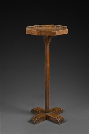 Antico guéridon in noce con piano di forma ottagonale poggiante su sostegno...