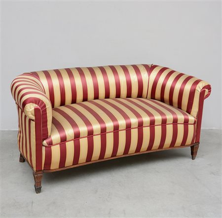 Divano a due posti con dorsale basso, gambe anteriori con puntali in metallo,...