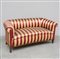 Divano a due posti con dorsale basso, gambe anteriori con puntali in metallo, rivestito con tessuto a righe (difetti)