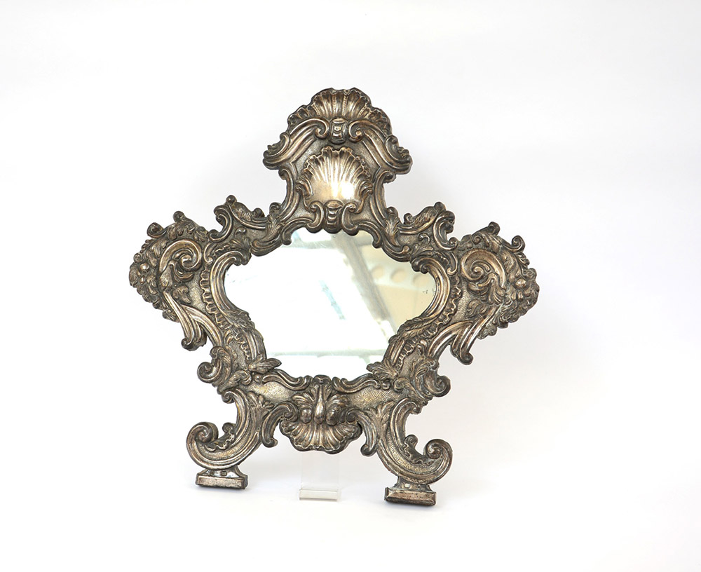 Cartagloria in metallo decorato a volute e valve di conchiglia (cm 56x56) Sec. XIX (difetti)