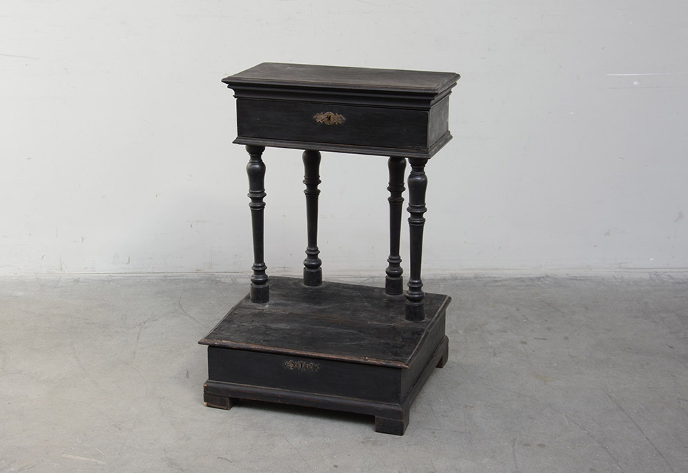 Inginocchiatoio ad un cassetto nella fascia e pianetto apribile, montanti a colonne tornite. Sec. XIX (cm 58x84x50)