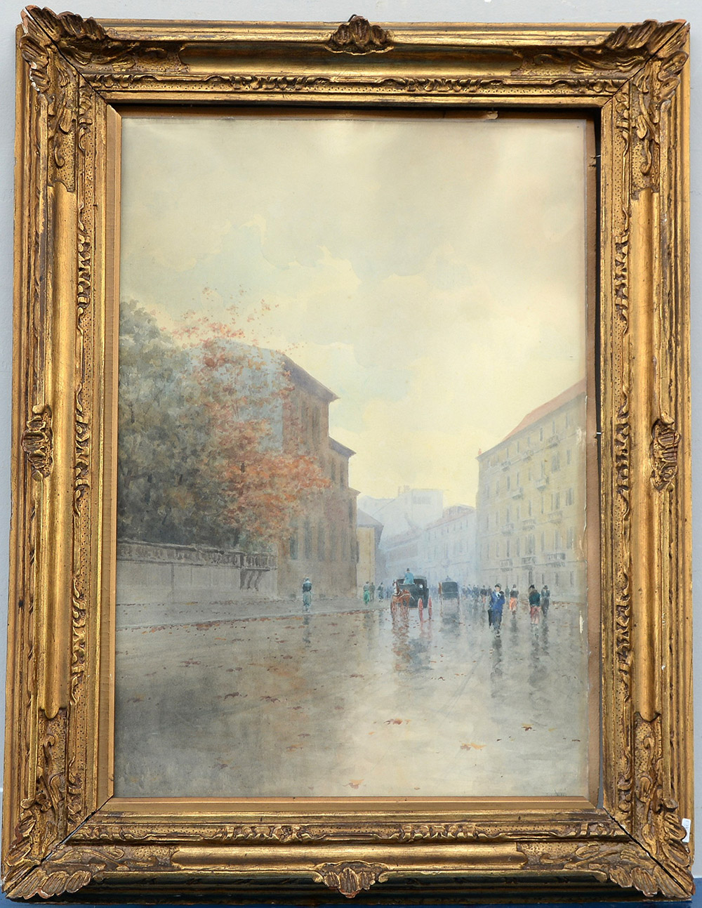 Firma indecifrata, "Scorcio di Parigi", acquerello su cartoncino (cm 48x35) firmato in basso a destra, in cornice (difetti)