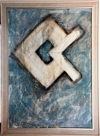 Firma indecifrata, "Composizione", pastelli colorati su carta (cm 100x70)...
