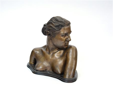 Vincenzo Gemito. "Mezzobusto femminile" scultura in bronzo (h cm 40) firmato sulla base con timbro della fonderia. Fusione postuma