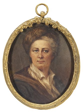 Maestro del sec. XIX "Ritratto di uomo con cappello di pelliccia" miniatura...