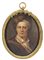 Maestro del sec. XIX "Ritratto di uomo con cappello di pelliccia" miniatura ovale su avorio (cm 8x6,5) Siglata GMS in basso a destra