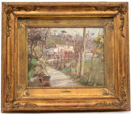 Claudio Morgigno Napoli 1949 "Paesaggio con casolare", olio su tela (cm 36x46) firmato in basso a destra, al retro firmato e timbrato dall'artista, in cornice (lievi difetti)