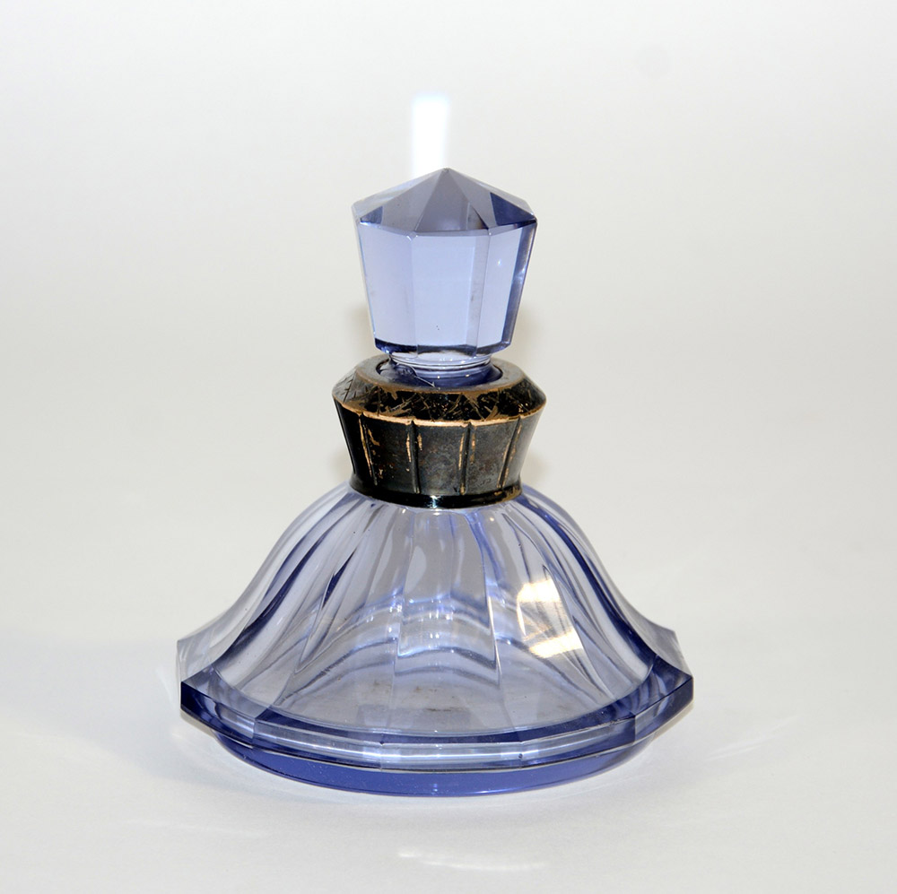Manifattura austriaca, bottiglia porta profumo in vetro violaceo con ghiera...