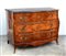 Antico comò di forma mossa a tre cassetti. Piano in marmo nero (difetti e...