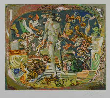 Sandro Chia Firenze 1946 Oggetti che salgono Litografia a 32 colori su carta, cm. 70x90, es. 89/90 Tiratura: 90 n.a.; xx n.r ;+ 5 p.a. Firma in basso a destra, tiratura in basso a sinistra.