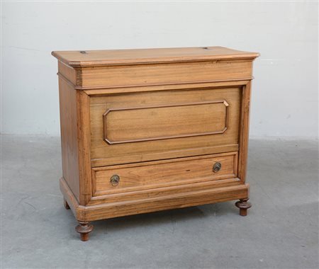 Madia con piano apribile e cassetto nella base, piedi torniti (cm 108x95x52)