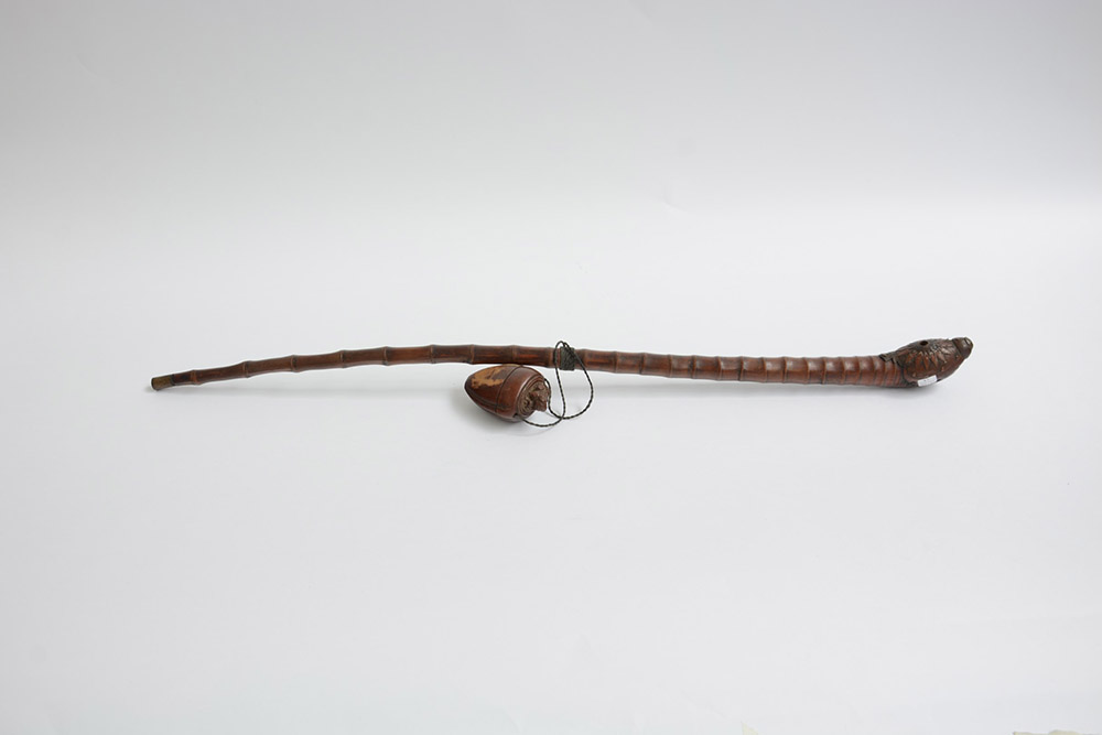 Pipa in bambù con applicazioni in metallo inciso e portatabacco con presa del...