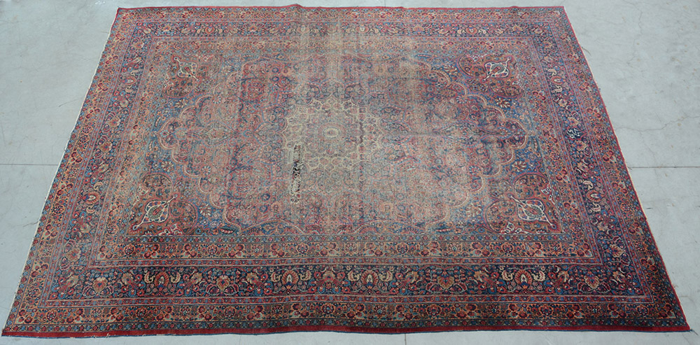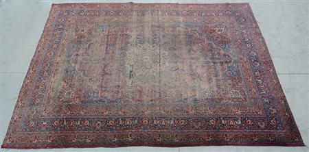 Tappeto Dorosh, Persia, riccamente decorato a motivi floreali nei toni del rosso, blu e avorio e firmato (cm 360x266) (gravi difetti)