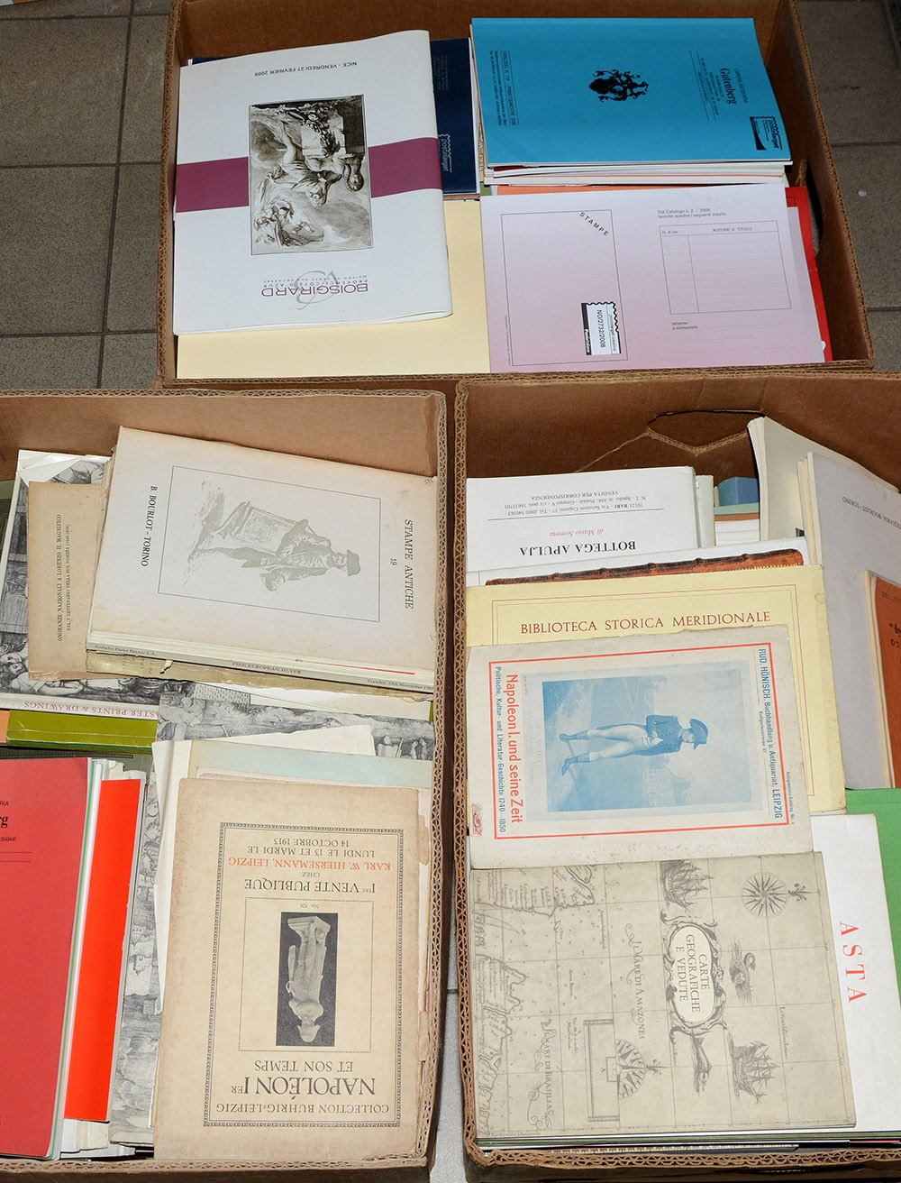 Lotto composto da numerosi cataloghi d'asta. In tre cartoni.