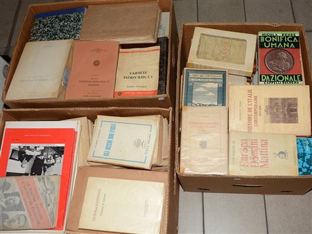 Lotto composto da numerosi volumi di storia, politica e storiografia (lievi difetti). In tre cartoni.