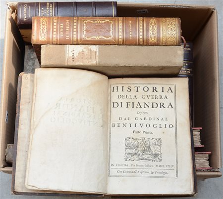 Lot 2104 | Cartone contenente svariati volumi di argomento ed epoca differenti.