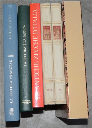 (Libri-arte) Lotto di sette volumi inerenti la pittura, musica, le zecche d'Italia.