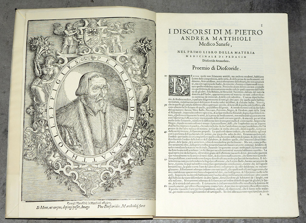 (Libri-Facsimile) I Discorsi di M. Pietro Andrea Matthioli Sanese...nelli sei libri di Pedacio Dioscoride Anazarbeo... Roma 1967 (ristampa anastatica della celebre edizione Venezia: Vincenzo Valgrisi 1568). Cinque volumi in 4° tutti illustrati, legatura editoriale.