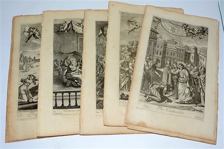 Gruppo di 250 incisioni (su un totale di 125 carte in formato in folio), tratte dal seguente volume: Fontaine, Nicolas, Sieur de Royaumont. The History of the Old Testament, Extracted out of Sacred Scripture and Writings of the Fathers for the Government of our Actions in all Conditions. 1690-1688 (lievi difetti).