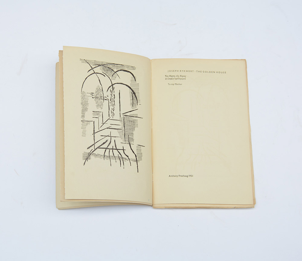 (Libri) J. Rykwert. The Golden House. Great Britain: Anthony Froshaug, 1951. Vol. in 8° in brossura editoriale. Esemplare 19/258, con dedica e firma dell'autore.