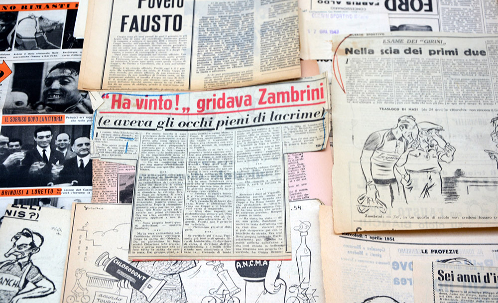Lotto composto da materiale attinente alle vicende ciclistiche di Fausto Coppi. E’ compreso un documento firmato dal ciclista, alcune testimonianze della ditta di biciclette Bianchi e svariati estratti di giornale inerenti i fatti ciclistici dei primi anni '50.