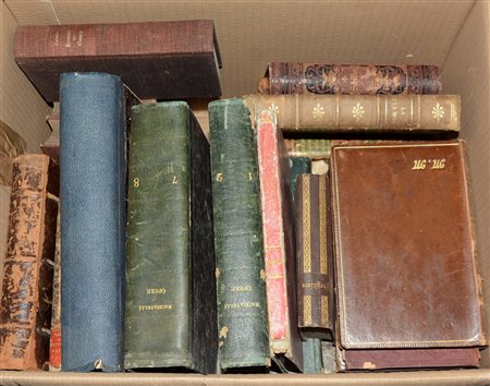Cartone contenente svariati volumi di diverso argomento ed epoca, relativi prevalentemente alla letteratura (lievi difetti).