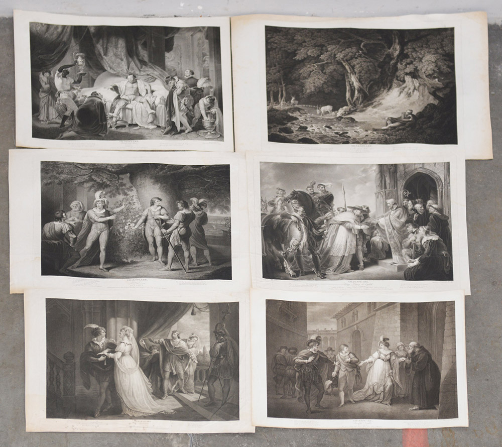 Gruppo di 18 incisioni in bianco e nero da Shakespeare (misure diverse) (difetti).