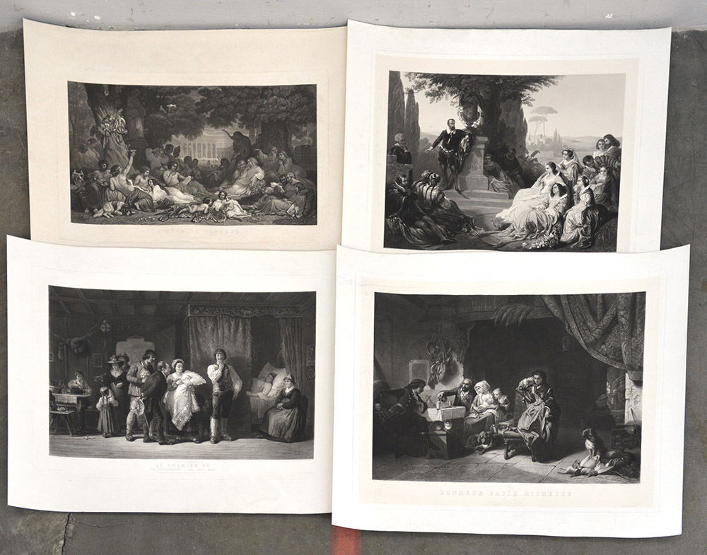 Gruppo di 4 incisioni di soggetto differente (misure indicative a foglio: 750x850 mm) (lievi difetti).