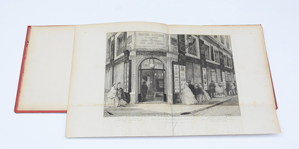 Album ottocentesco contenente svariate incisioni di soggetto differente. Legatura coeva di colore rosso con decorazioni in oro (lievi difetti e mancanze).