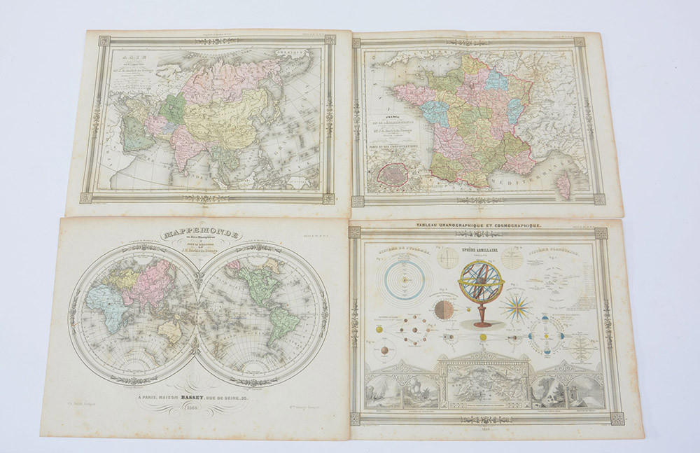 Lotto di nove carte grografiche a colori della metà del XIX secolo (fioriture).