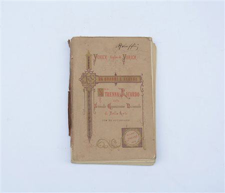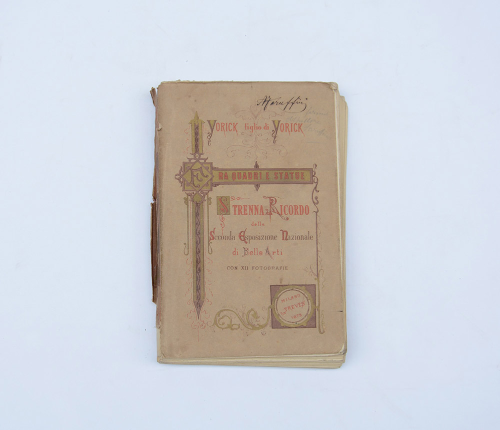 Yorick figlio di Yorick. Fra quadri e statue Strenna-Ricordo della Seconda Esposizione Nazionale di belle arti. Milano: Fratelli Treves, 1873. Volume 8vo, con fotografie. Con iscrizione "Faruffini" sulla coperta anteriore. Legatura editoriale compromessa (difetti).