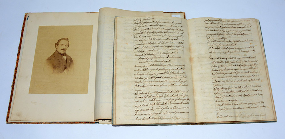 (Libri-autografo) Cartellettta contenente sette lettere del medico Gaetano Ansaldi datate al biennio 1850-1851, precedute da una nota biografica di mano ottocentesca e da un ritratto fotografico dello stesso Ansaldi. Si aggiunge un fascicoletto manoscritto sulla fisica (difetti).