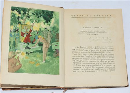 LOUYS, Pierre. Les aventures du Roi Pausole. Parigi: Rombaldi Editeur, [1937. 4to, con cinque incisioni a colori. Esemplare 1986. Legatura in mezza pelle con piatti marmorizzati.