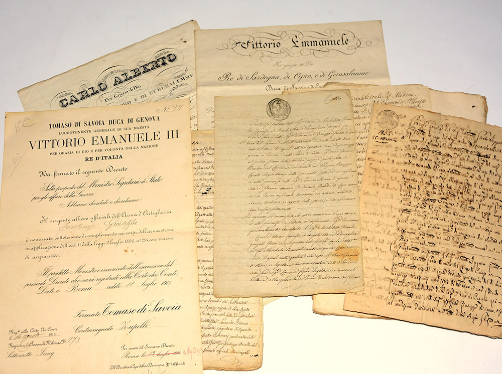 (Libri-documenti) Lotto di diversi documenti e testimonianze di carattere storico-archivistico pertinenti al secolo XIX (difetti).