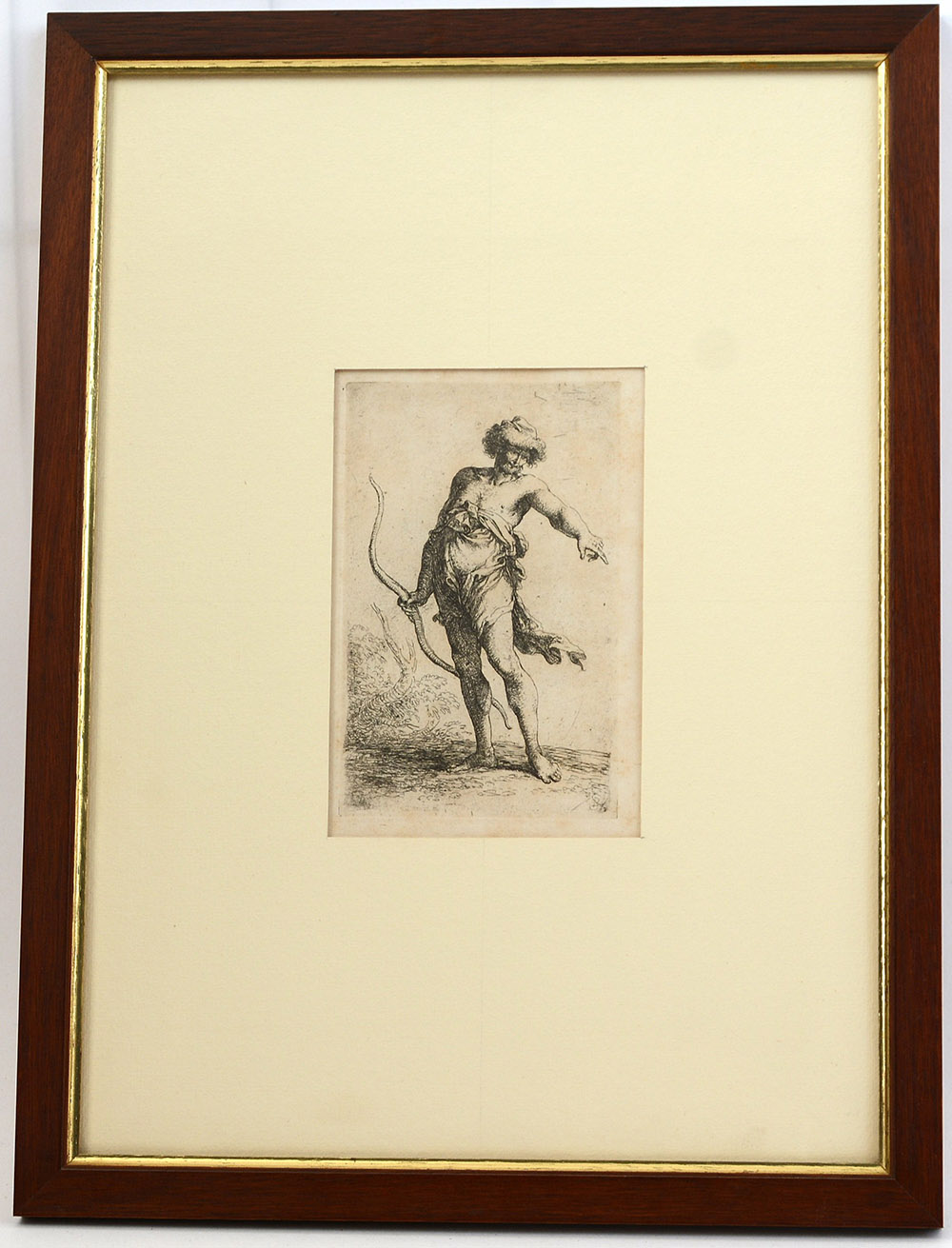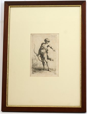 Salvator Rosa Napoli 1615 Roma 1673 "Uomo con l'arco", acquaforte (battuta cm 14x9), in cornice (lievi difetti)