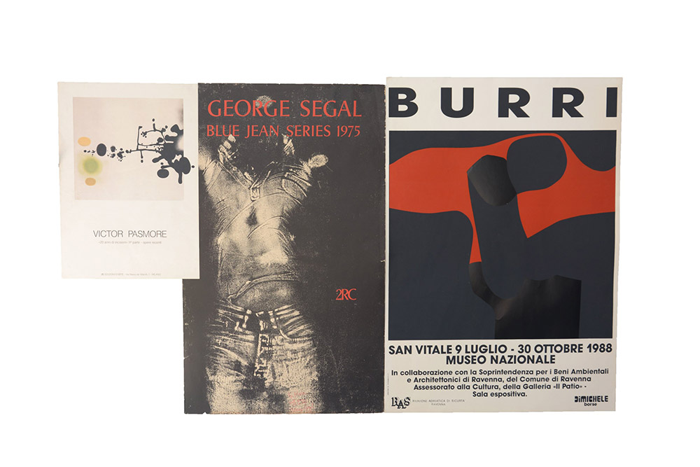 Lotto composto da tre manifesti di mostre di Burri, Pasmore e Segal, misure diverse (lievi difetti)