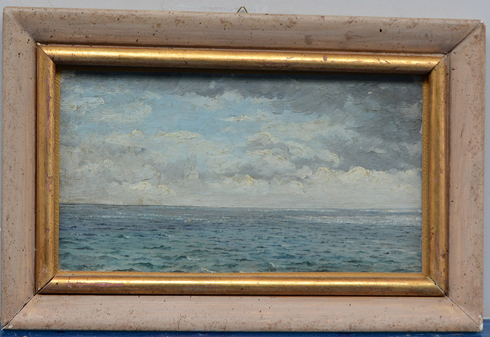 Scuola della fine del secolo XIX "Marina" olio su tela (cm 16x29) in cornice (difetti)