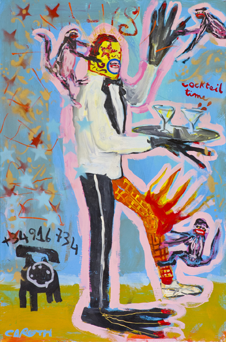 Cristiano Carotti Terni 1981 Cocktail time Tecnica mista su tela, cm. 60x40 Firmato in basso a sinistra.
