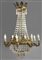 Lampadario a cesto a otto bracci con struttura in bronzo decorata a volute, fregi traforati e pendagli in cristalli. Portacandele mossi con volute fogliate. Sec XIX. (h cm 98) 19th-century eight-branch chandelier