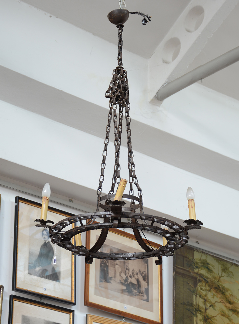Lampadario a cinque fiamme in ferro battuto (difetti)
