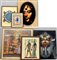 Lotto composto da sei quadri raffiguranti figure dell'antico Egitto, tecniche...