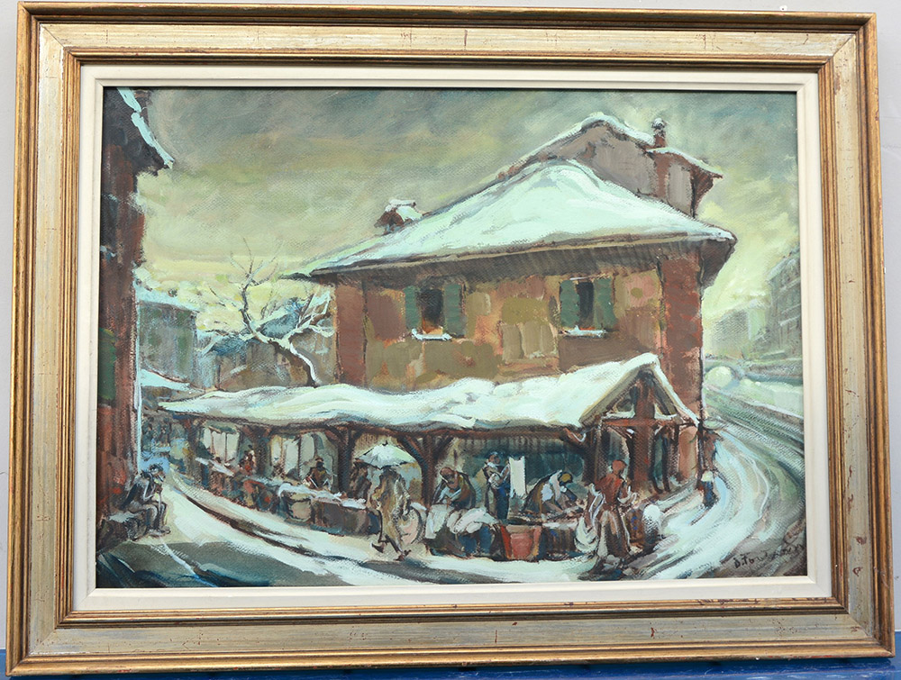 Daniele Fontana "Il lavatoio pubblico a Ripa Ticinese" tempera (cm 50x70) firmata in basso a destra. Iscritto e titolato al retro in cornice